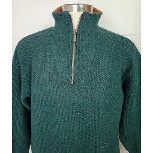 Vintage Orvis Mens Green Flecked Wool Blend 1/4 Sweater Jacket USA Large