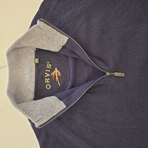 Vintage Orvis Mens Wool 1/4 Zip Elbow Patch Pullover Sweater Blue Size Medium