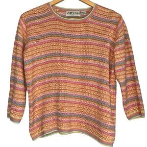 Vintage Orvis Open Knit Pastel Pink Striped Sweater Womens Medium Ramie Cotton