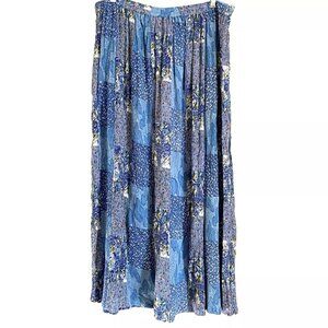 Vintage Orvis Patchwork Floral A-Line Midi Skirt Large Drawstring Waist Boho