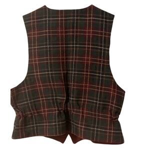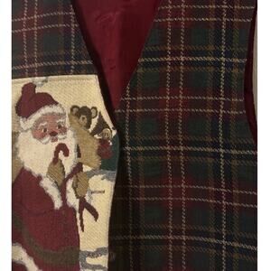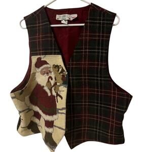 Vintage Christmas Tapestry Tartan Plaid Santa Lined Vest Made In USA Size XL