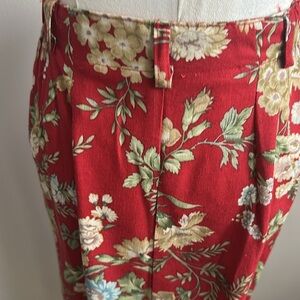 A Beautiful Red Pencil Skirt with a Floral Pattern