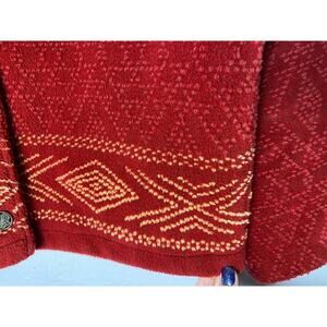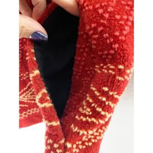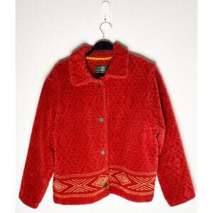 Vintage Orvis Women's Short Rust Orange Aztec Texture Print Jacket Pockets Soft Teddy Grandma Grandpa Cozy Chore Coat
