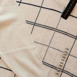 New with tags. No rips or stains or discoloration. Perfect condition. Back of sweater and sleeve are a solid off white. Front, fun grey stripes.