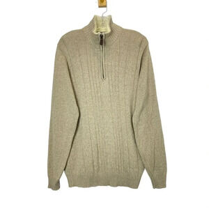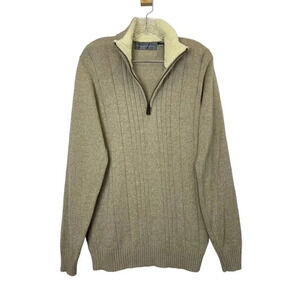 Oscar De La Renta 1/4 Zip Sweater Pullover Quarter Zip Size Medium Color Beige with Tan undertones.