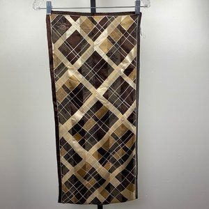 Vintage Oscar De La Renta Brown and Tan Geometric 100% Silk Scarf 62" X 13.25"