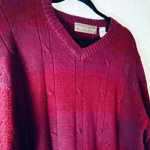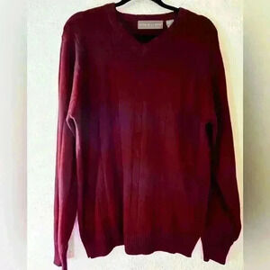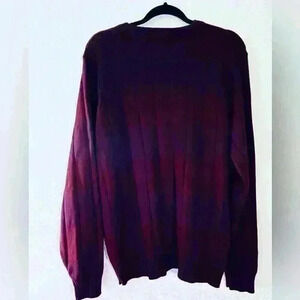 Vintage Oscar De La Renta Cotton Blend Sweater Two Tone Maroon V Neck Size L