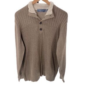 Vintage Oscar De La Renta Men’s L Pullover Sweater Beige Tan Button Neck Cotton