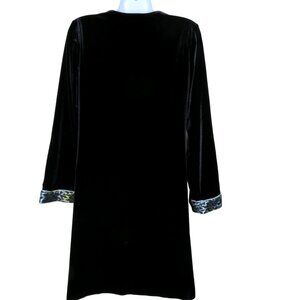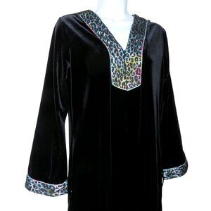 Vintage Oscar De La Renta Pink Label Black Velvet Tunic Top Leopard Print Trim Size S