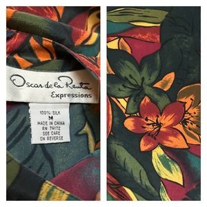 Vintage Oscar De La Renta Silk Floral Blouse / Women’s Medium *