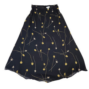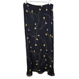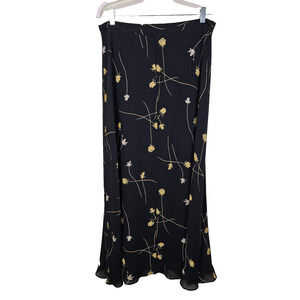 Vintage Oscar De La Renta Silk Maxi Skirt Women Floral Long A-Line Black Gold 16