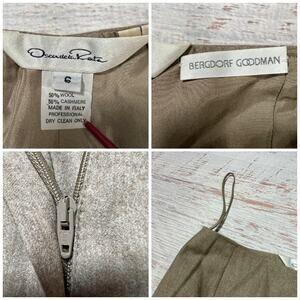 Upgrade your wardrobe with these stunning Oscar de la Renta trousers, made in Italy from an exquisite 50% wool, 50% cashmere blend. Featuring a wide-leg silhouette and clean side-zip closure, these pants were offered exclusively at Bergdorf Goodman and represent timeless tailoring and luxury craftsmanship. The rich, neutral hue and premium fabric make them perfect for elevated office attire, refined events, or sleek everyday styling. Elegant, comfortable, and undeniably luxe.