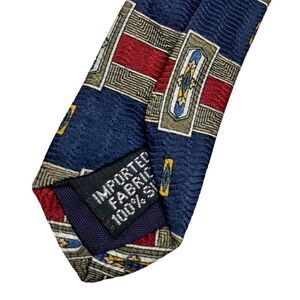 Vintage Oscar de la Renta Men's Necktie Tie Blue Maroon Geometric Silk Designer