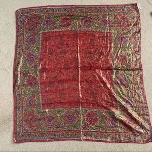 Vintage Oscar de la Renta Metallic Deep Red Gold Floral Square Scarf