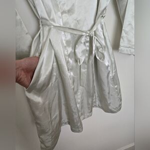 Vintage Oscar de la Renta Pink Label Elegant Light Green Satin Robe | Size M