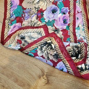 Vintage Oscar de la Renta Scarf, Floral, Silk, Rectangular, Red Purple Flowers