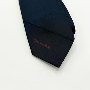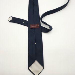 Vintage Oscar de la Renta Script Writing Navy Blue Silk Blend Tie