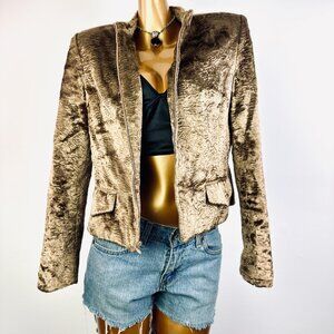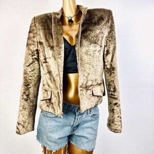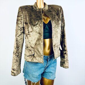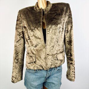 This vintage Oscar de la Renta jacket is brown in color, and zips up the front. Its fully lined and has padded shoulders. The condition is good. The marked size is 10, and the marked brand is "Oscar by Oscar de la Renta". It would best fit a size Medium/Large. Please measure yourself before buying if you plan on wearing it.