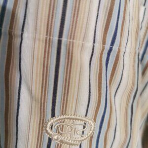 Oscar de la Renta Short Sleeve Button Shirt Men's M Beige Striped Single Needle