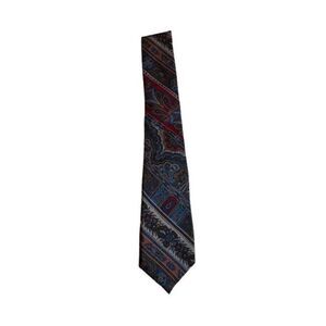 Vintage Oscar de la Renta tie in paisley with dark red, blue, gray hues. No visible tears or stains. Comes from smoke-free home.