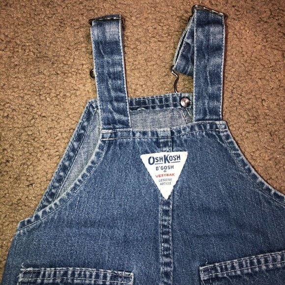 Vintage Osh Kosh B’Gosh Vestbak Denim Bib Overalls 12 Months Stripe Detail USA.