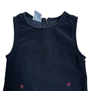 Vintage Osh Kosh B’gosh •Black •Corduroy •Sleeveless •Rose Embroidered Details •Back Zipper •Small Purple Flower Details •Casual •Fall
