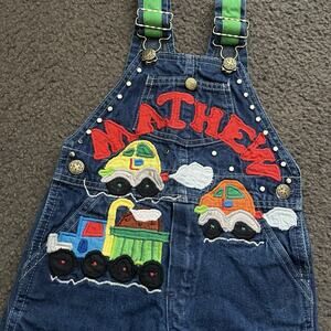 Vintage OshKosh B’Gosh Embroidered “Mathew” & Cars Overalls