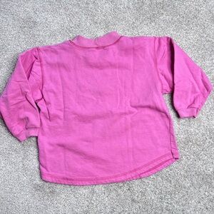 Size 5. In great condition, no holes or tears. Has a couple of spots.. see photos. Pink in color with purple embroidered bow graphic. Kind of a 90s silhouette with the mock neck and loose fit hem.