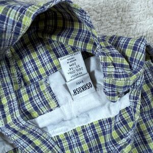 Vintage OshKosh B’Gosh Plaid Frog Boys Overalls in gently used condition. Size boys 24 months. Waist 11 1/2”, total length 21”, inseam 4”. 💚 Play Yard Prep / Retro Plaid Babycore
