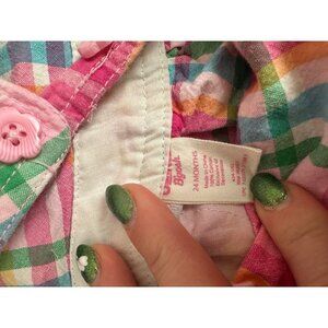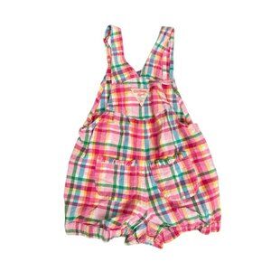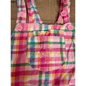 Vintage OshKosh BGosh Toddler Girls Pink Plaid Cotton Shortalls With Flower Butt