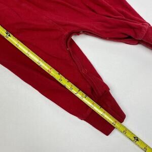Vintage OshKosh B'gosh Boys Red Coverall. Baby boy size 6-9 months, but please check measurements. (Seem to run big.) Amazing 90s style one piece outfit! Cozy long sleeves and pants for fall and winter. Red with navy collar and quilted patched on shoulders. Stripes on the arms. The top half of one snap is pulling apart from the fabric. (It's fine, but if you're a rip all the snaps apart at once kind of person, maybe don't with this one!)