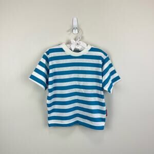 Vintage OshKosh B'gosh Striped Blue T-Shirt. Toddler boy or girl size 4T. USA made. Thick, bright blue and white striped short sleeve top. Red tag. Excellent condition!