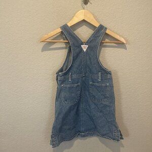 Vintage OshKosh Floral Denim Skirtall Jumper Girls 6 Flag Embroidery July 4th. Shipped with USPS Ground Advantage.