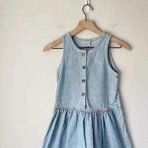 Vintage OshKosh Girl's Denim Button Front Sleeveless Dress Size 6x