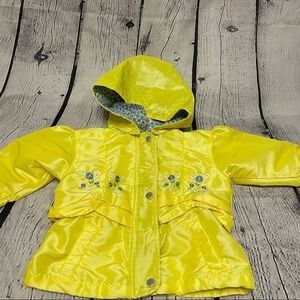 Vintage OshKosh Girls Floral Embroidered Rain Jacket Coat Hooded Yellow Size 12M