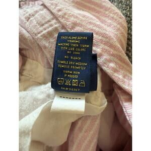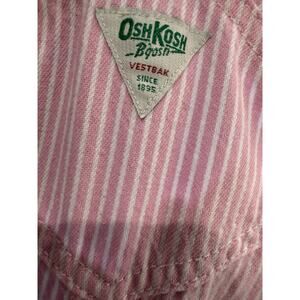 The product is a vintage pair of OshKosh B’gosh overalls in pink and white stripes, designed for girls in size 5. These one-piece overall-style outfits feature a colorful striped pattern, perfect for a fun and playful look. With the brand's reputation for quality and durability, these overalls are sure to be a timeless addition to any little girl's wardrobe.