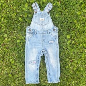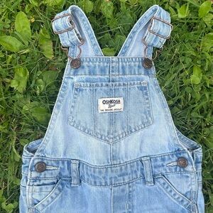 Good preowned condition toddler girls vintage Oshkosh B’Gosh Vestbak denim bib overalls