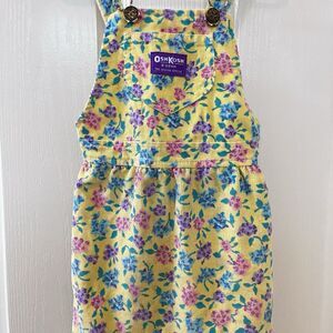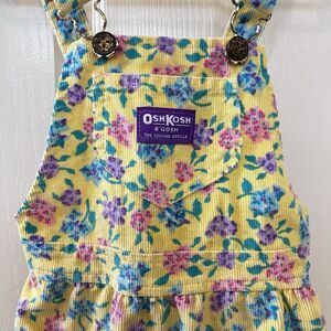 Vintage Oshkosh B'Gosh Yellow Floral Corduroy Overall USA Dress Girls SZ 5 FLAWS