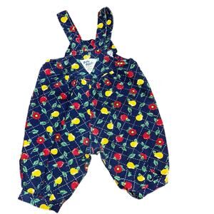 Vintage 90s Oshkosh B'Gosh blue Fruit Apple Pear Floral romper overalls girl 3-6m