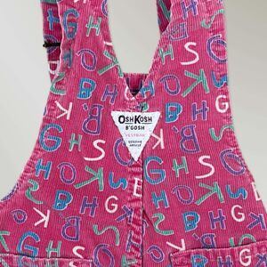 Vintage Oshkosh B'gosh Girl's Overalls Pink Alphabet Print Bibs Size 18 mos