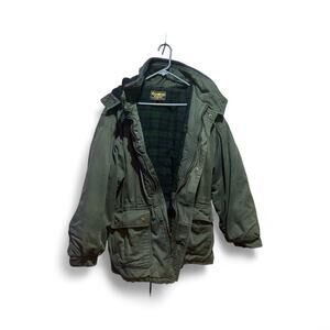 Vintage Oshkosh B'gosh Green Jacket Men’s L Corduroy Collar Plaid Lining Hooded