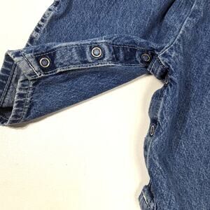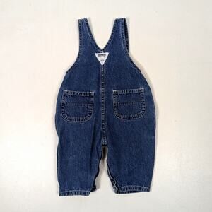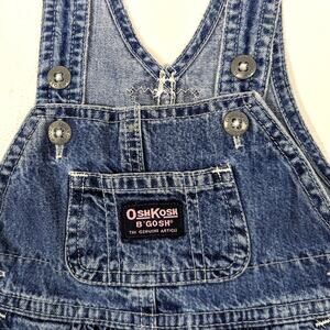 Vintage Oshkosh Bgosh medium wash denim overalls. Size is tagged as medium, which looks to fit like 12m. Please check the measurements provided.