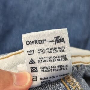 Vintage OshkoshBgosh denim overalls with a navy patch. Size 24m