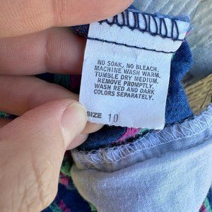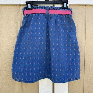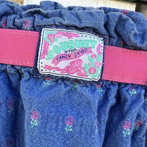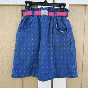 Vintage Oshkosh Pink Blue Jean Denim Pull On Skirt Floral Girl’s Size 10 Elastic