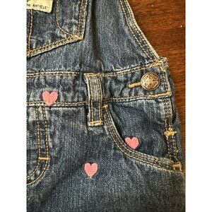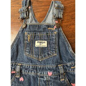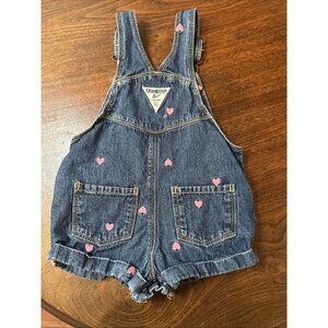 Vintage Oshkosh Pink Heart Embroidered Denim Bubble Overall Shortalls 18 Mo