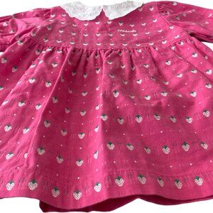 Vintage Oshkosh Strawberry Print Dress Pink with Collar 3T USA