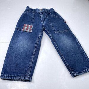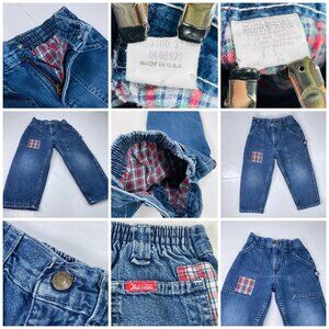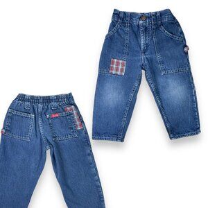 Vintage Oshkosh Toddler Elastic Waist Plaid Pants Denim Jeans 2T