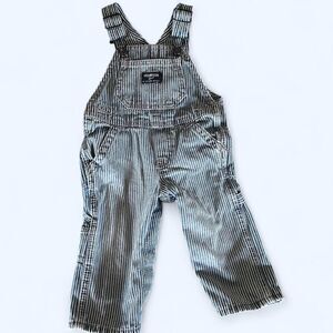 vintage Navy and white striped OshKosh train overalls size 9 months. In good condition, no stains rips or tears, . #kidcore #oshgosh #vintage