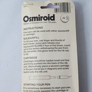 The Osmiroid Fountain Pen is a reliable writing instrument, featuring a squeezefill mechanism for seamless ink filling. The cap and barrel design ensures durability and ease of use. Made in England, this pen is crafted with precision, suitable for both personal and professional settings.