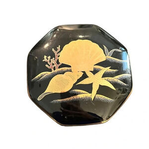 Vintage Otagiri Black Gold Seashell Trinket Box